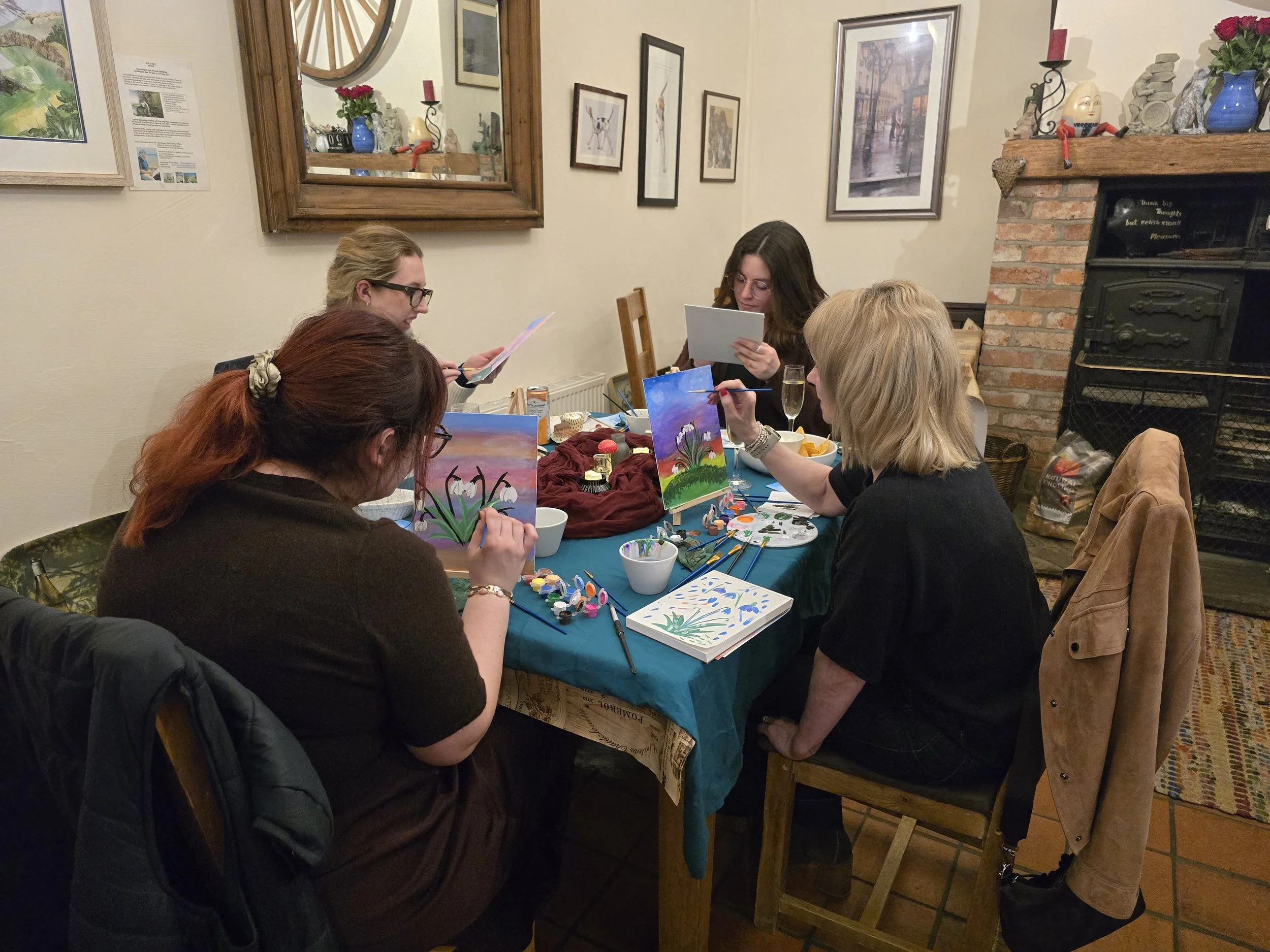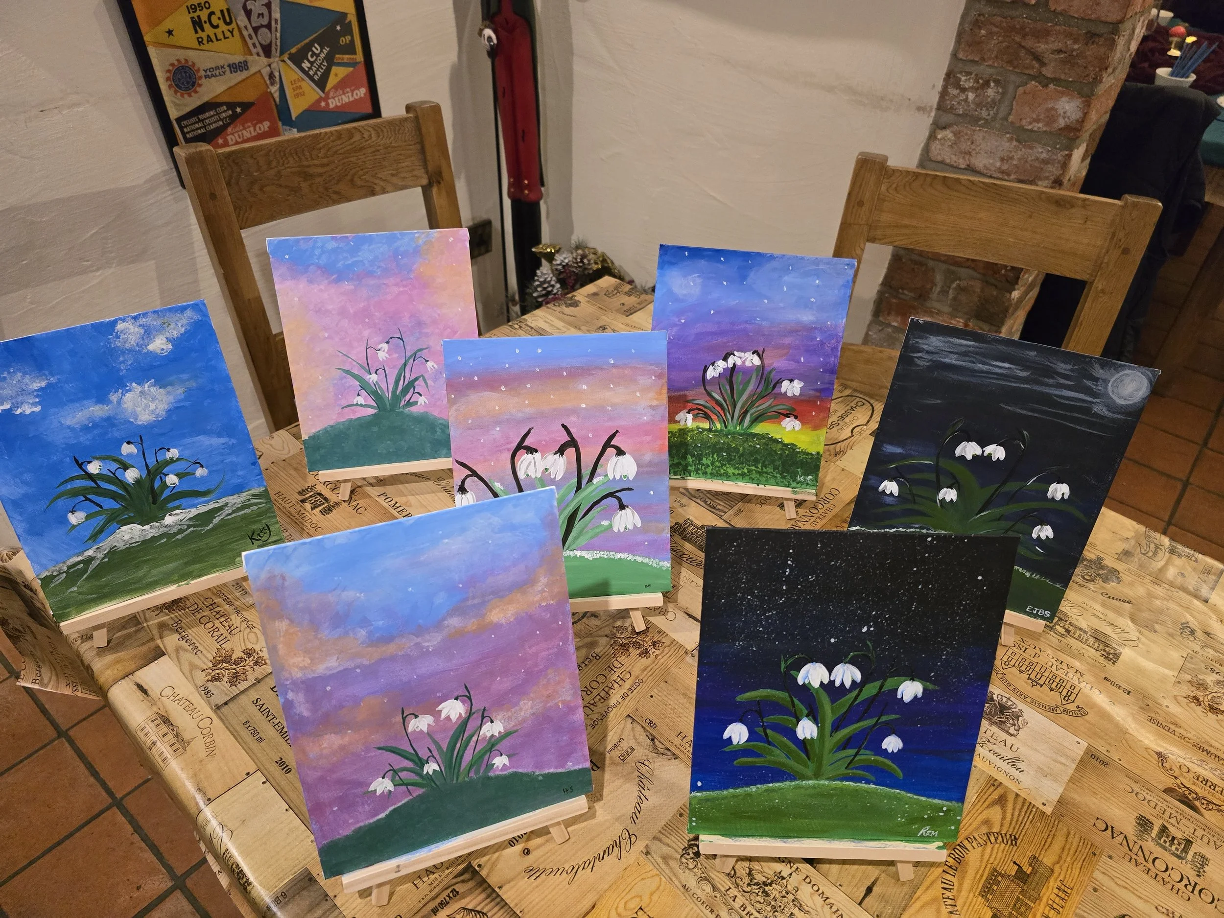 Do you want to have a sip and paint in your own home or at a venue but don’t want the faff of setting up and getting the gear together. You can book me for an evening and I will fetch everything you need and host the sip and paint for you. Please book via enquiry for this service and for more information on prices.